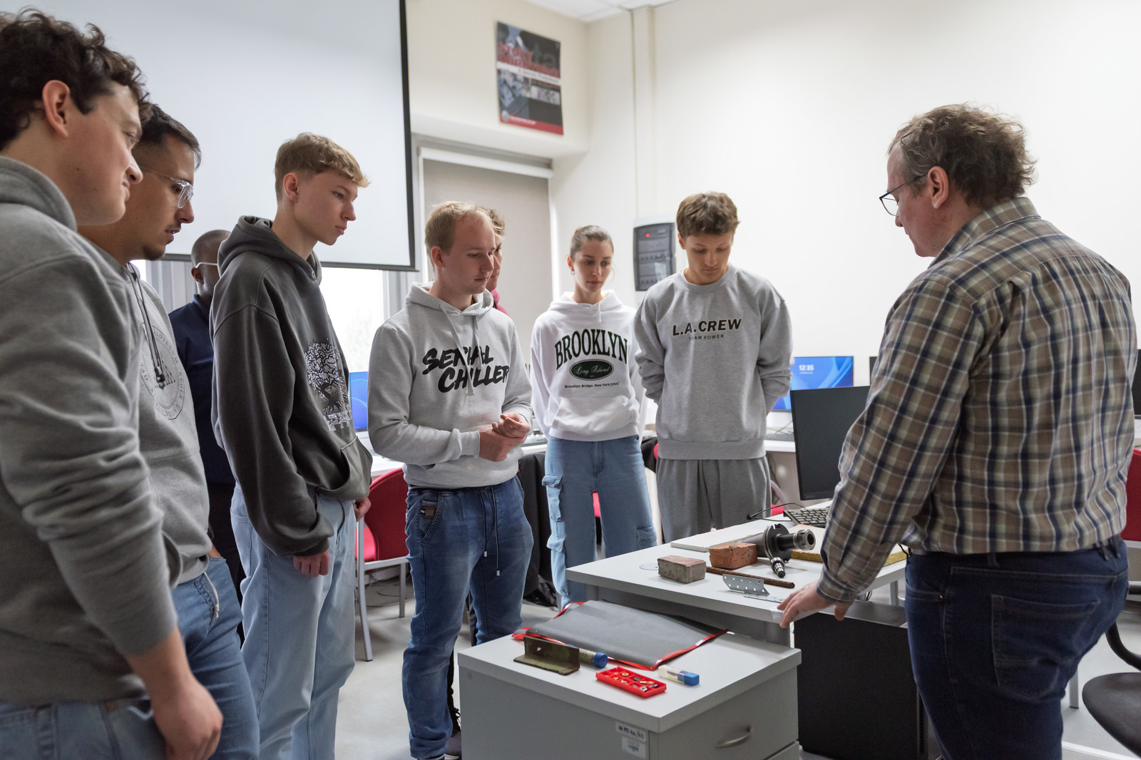 Drugi etap szkolenia zrealizowano w laboratoriach Politechniki Rzeszowskiej im. Ignacego Łukasiewicza. W szkoleniu wzięli udział studenci i pracownicy Politechniki Rzeszowskiej (Polska), Uniwersytetu Technicznego w Kownie (Litwa) oraz Uniwersytetu w Oviedo (Hiszpania) zaangażowani w prace w następujących obszarach wiedzy: inżynieria mechaniczna i wytwarzania, inżynieria lądowa, inżynieria materiałowa. W programie znalazły się: Exercise 1 – application of surface metrology in measurements of mechanical and civil objects (zastosowanie metrologii powierzchni dla potrzeb pomiarów części mechanicznych i obiektów inżynierii lądowej), Exercise 2 – application of coordinate measuring techniques in measurements of mechanical and civil objects (zastosowanie pomiarów współrzędnościowych dla potrzeb pomiarów wyrobów stosowanych w inżynierii mechanicznej i lądowej), Exercise 3 – application of selected measuring techniques for the aims of data collection. Measurement of modal parameters of civil structure using acceleration sensors and a laser vibrometer (zastosowanie czujników przyspieszenia i wibrometrów laserowych w badaniach obiektów inżynierskich), Exercise 4 – application of statistical software in data analysis (zastosowanie oprogramowania (w tym modeli językowych generatywnej sztucznej inteligencji) w analizie danych i statystyce), Summary, interactive tests for developed exercises, feedback collection (podsumowanie, testy, zbieranie opinii i sugestii od studentów i pracowników).