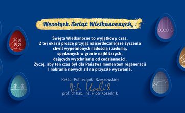 Życzenia z okazji Świąt Wielkanocnych rektora Politechniki Rzeszowskiej prof. dr. hab. inż. Piotra Koszelnika.