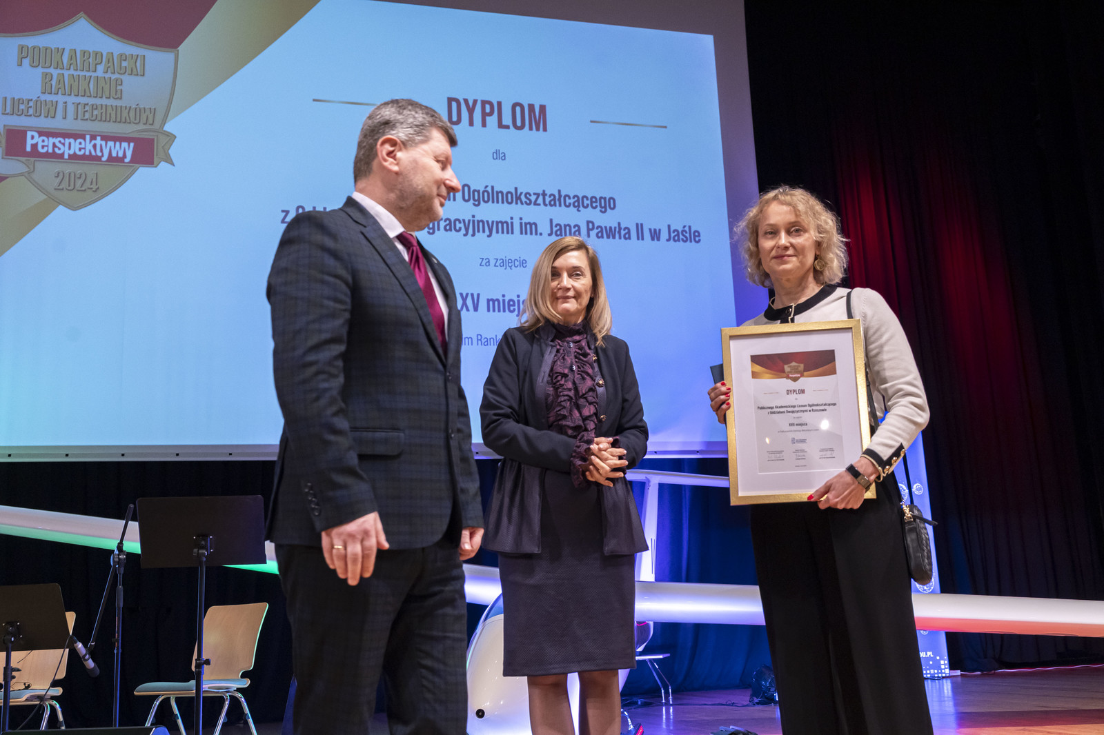 Na Politechnice Rzeszowskiej odbyła się uroczysta gala Podkarpackiego Rankingu Liceów i Techników Perspektywy 2024. Dyplomy i listy gratulacyjne przedstawicielom najlepszych szkół wręczyli rektor naszej uczelni prof. dr hab. inż. Piotr Koszelnik i podkarpacki kurator oświaty Dorota Nowak-Maluchnik.