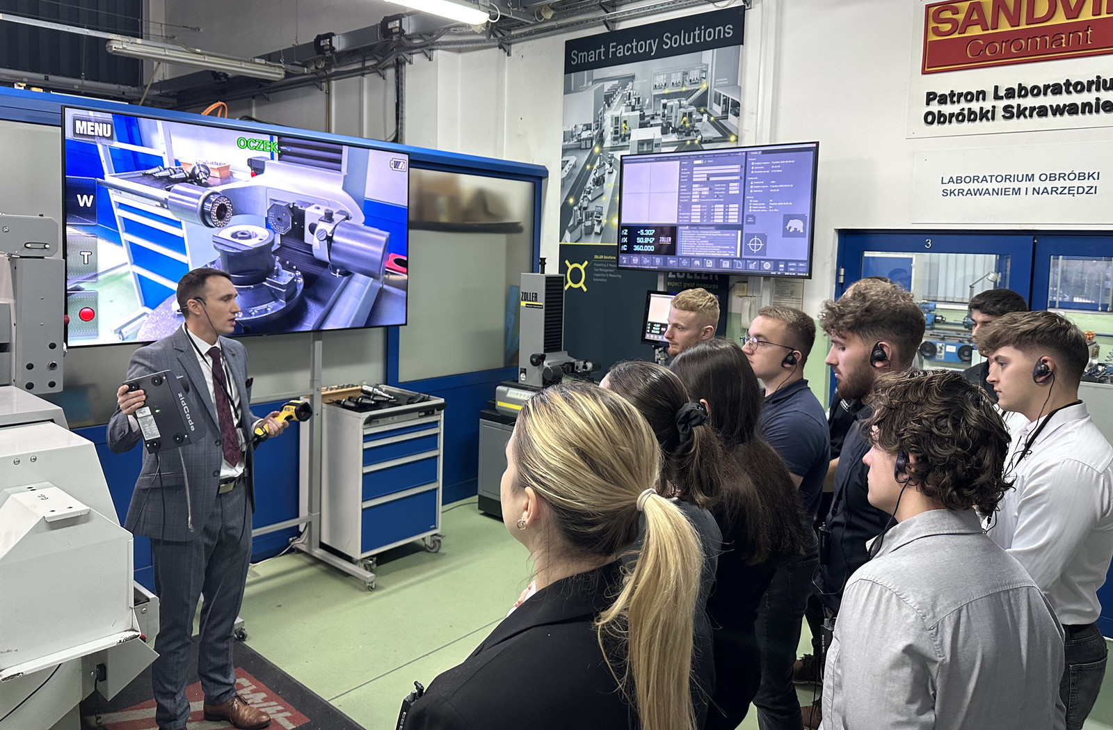 W ramach warsztatów zrealizowano sesje teoretyczne oraz ćwiczenia praktyczne, skoncentrowane na pomiarze geometrii narzędzi skrawających z wykorzystaniem urządzenia ZOLLER smarTcheck 450, stanowiącego integralny element wyposażenia katedry. Tematyka zajęć obejmowała zagadnienia związane z nowoczesnym podejściem do pomiarów i zarządzania narzędziami skrawającymi, w szczególności: