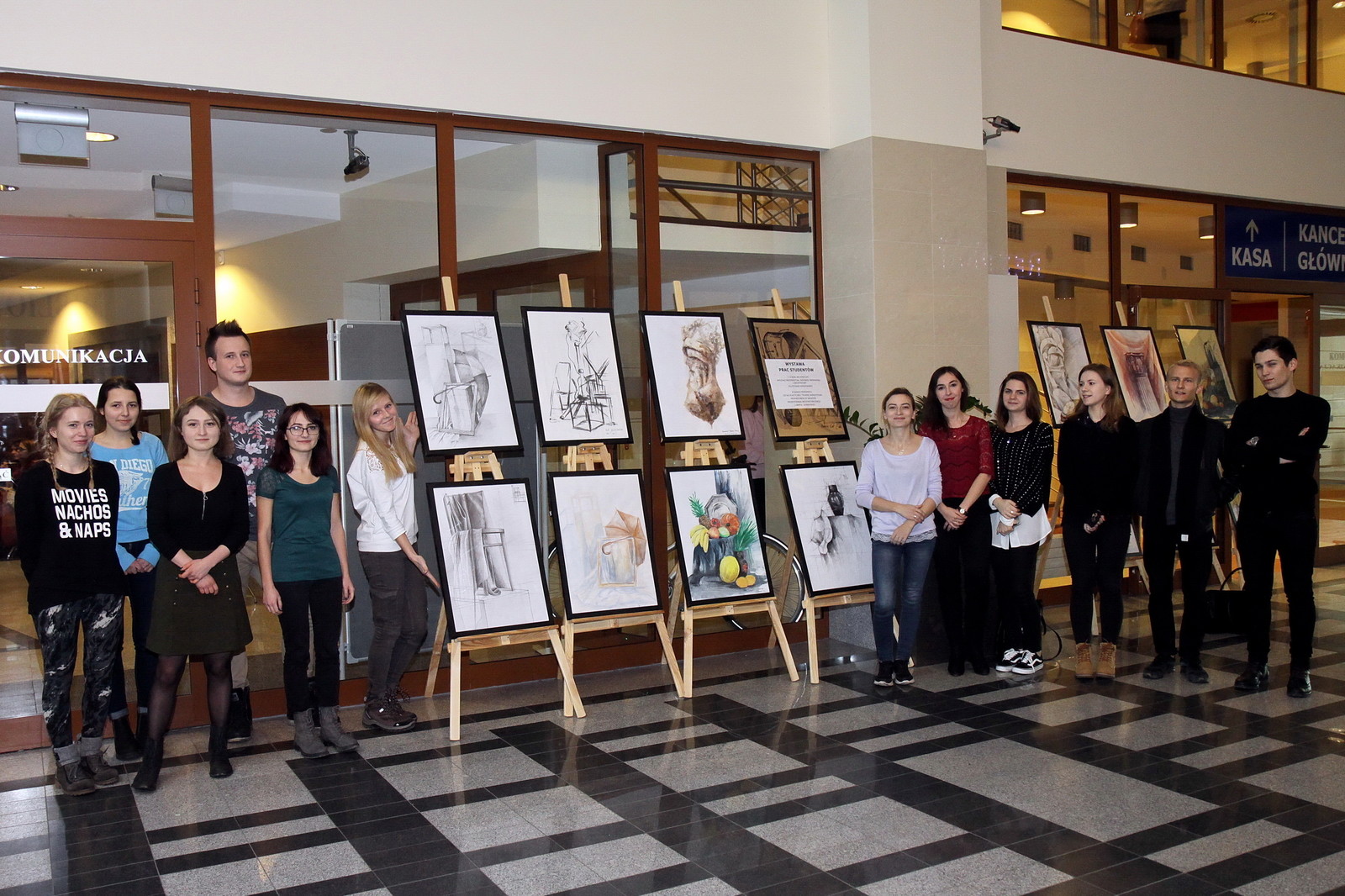 Według słów jednej z prowadzących zajęcia – dr inż. arch. Anny Martyki: „wystawione prace […] ujawniają indywidualne predyspozycje artystyczne studentów oraz ich zainteresowania związane z wybranym kierunkiem studiów”. Autorami prezentowanych obrazów, rysunków i szkiców są: Natalia Bartman, Anna Boryczka, Agnieszka Bugiel, Daniel Bukała, Iryna Danyliuk, Angelika Golema, Anna Hajduk, Natalia Kot, Dominika Kranz, Urszula Król, Aleksandra Kuc, Katarzyna Matras, Bartłomiej Miłosz, Gabriela Nidecka, Adrianna Polak, Agnieszka Skwirut i Jakub Szajna.