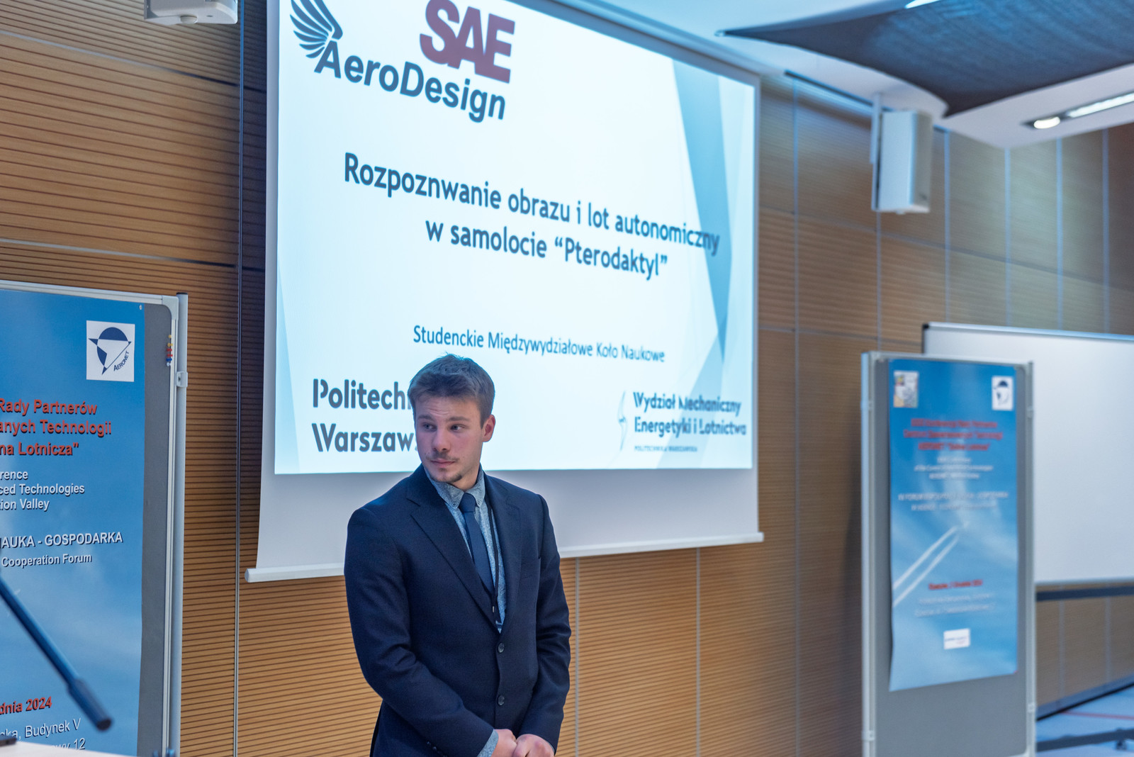 W wydarzeniu wzięli również udział studenci z kół naukowych Politechniki Rzeszowskiej, Politechniki Warszawskiej oraz Akademii Górniczo-Hutniczej w Krakowie. Naszą uczelnię reprezentowały dwa koła. Studenci Koła Naukowego EUROAVIA przedstawili plany na 2025 r. dotyczące udziału w SAE Aero Design 2025 EAST, natomiast studenci Koła Naukowego Inżynierii Kosmicznej zaprezentowali swoje osiągnięcia w zakresie misji kosmicznej w Space Challenge. Koło Naukowe AeroDesign z Politechniki Warszawskiej przedstawiło projekt dotyczący systemu rozpoznawania obrazu oraz lotu autonomicznego w samolocie Pterodaktyl. Technologie kosmiczne to temat wystąpienia członków Koła Naukowego AGH Space Systems.